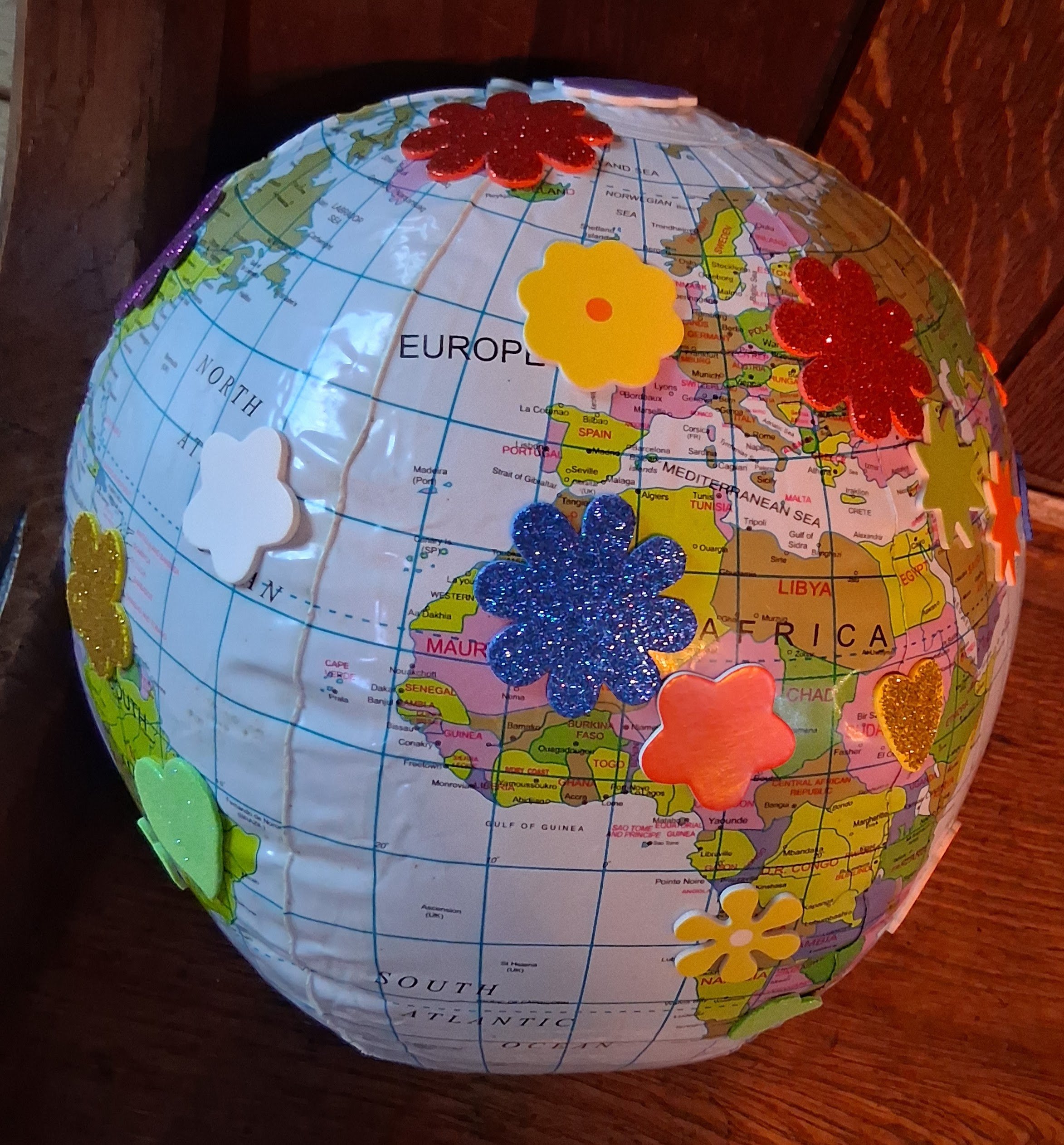 To that end at our kid’s club on Friday we covered a globe in colourful stickers, each one a prayer for peace. some stickers were placed indiscriminately, others in countries they had heard of. Maybe it’s just a tiny sticking plaster on a world that seems fractured beyond repair, but it’s a start and something positive.